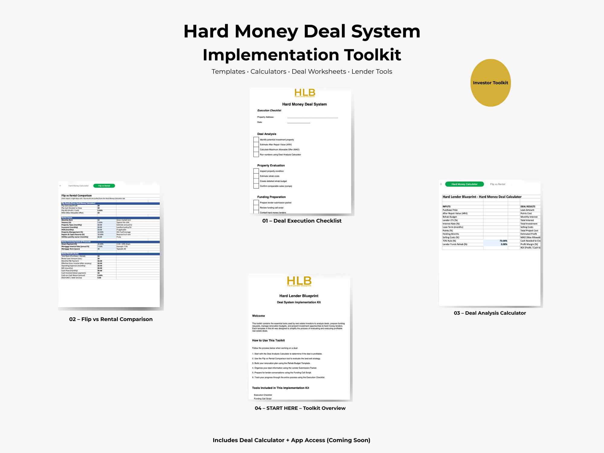 When the Hard Lender Blueprint Deal Analyzer App launches, toolkit buyers will receive: